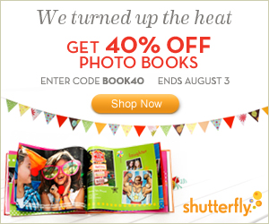 Take 40% off all photo books from Shutterfly.com! Offer valid 7.28-8.3 with promo code BOOK40